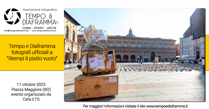Continua la collaborazione dell’ Associazione Fotografica Tempo e Diaframma APS con Cefa ETS: Tempo e Diaframma è infatti tra i collaboratori dell’evento “Riempi il piatto vuoto” che si terrà sabato 11 ottobre in Piazza Maggiore a Bologna.